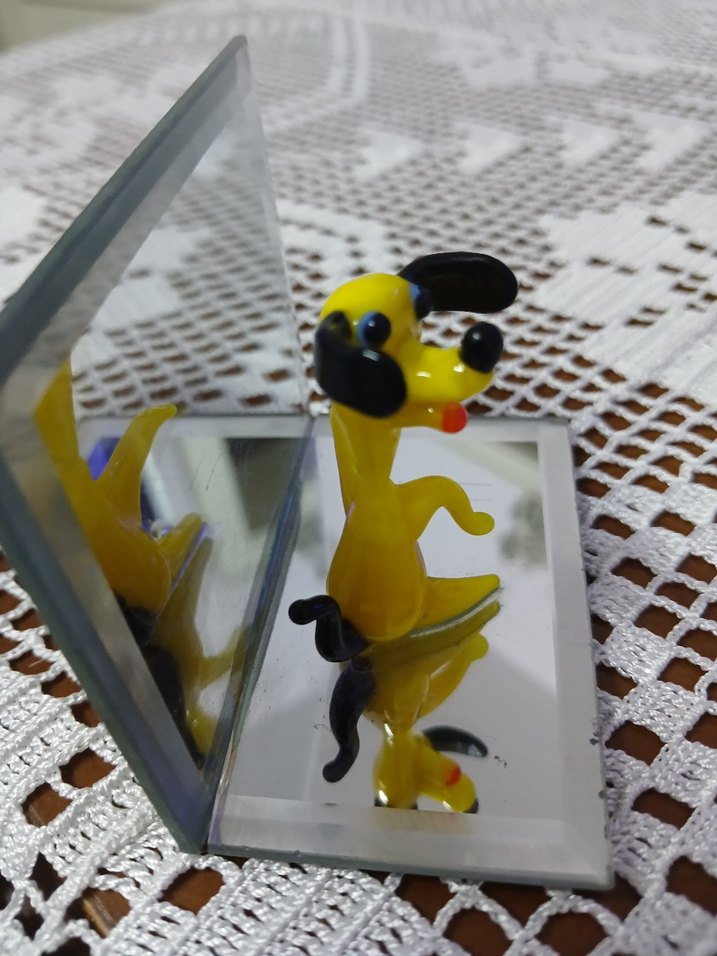 swaravski stili kristal el yapımı köpek biblo. Alt ve arkası aynalı, köpek figürü ise üfleme cam, usta el işçiliği ile hazırlanmış, kusursuz. canlı renkler. yükseklik 6cm genişlik:7cm derinlik:4cm