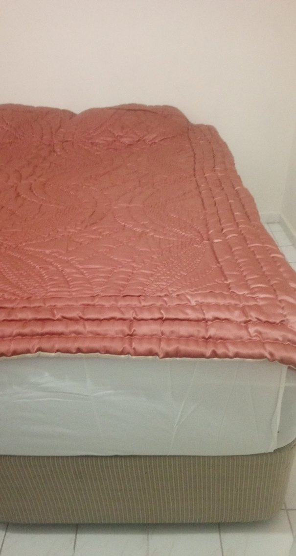 Pastel pembe renkli, hafif dikişli tasarıma sahip, yumuşak ve rahat bir yatak örtüsü.