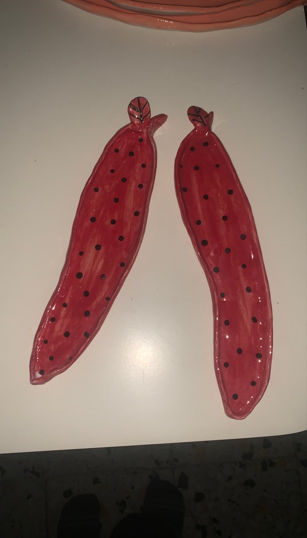 El yapımı seramik biber tabak çift