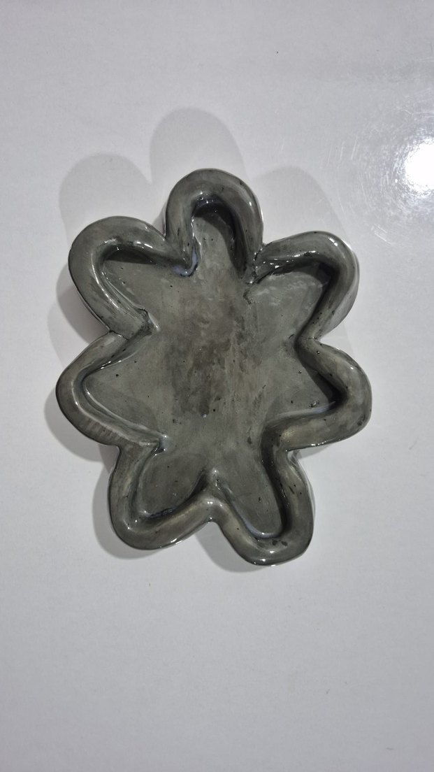 Gri renkte, fırfırlı avant-garde tarzda, düz ve desensiz seramik takılık