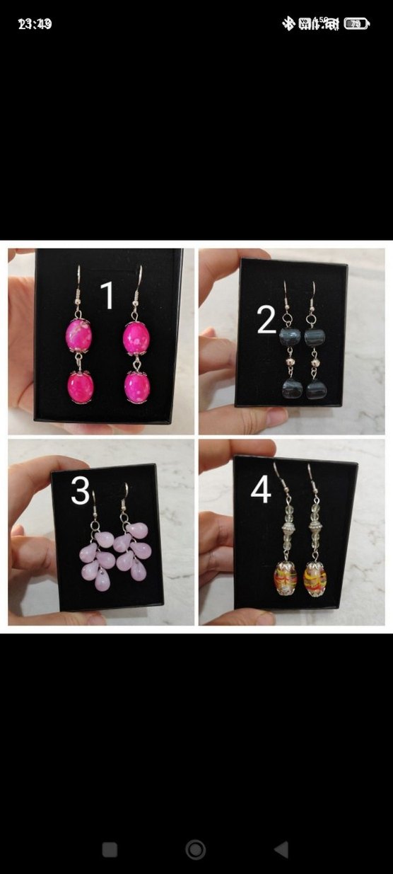 el yapımı taşlı küpeler. 1 çift fiyatıdır. istediğiniz küpe çifti için yeni ilan açılacaktır.