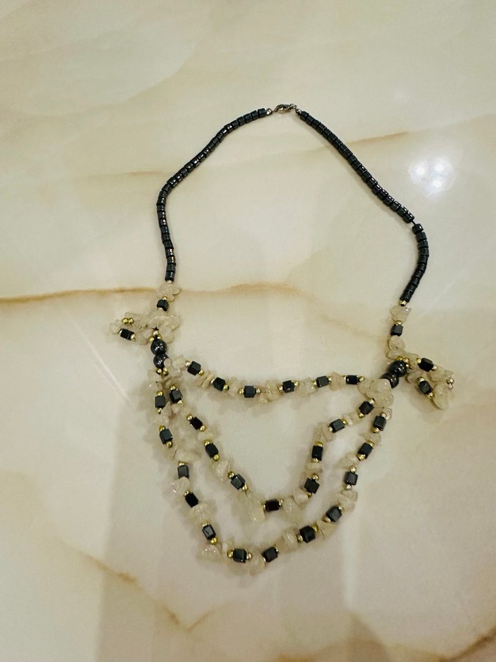 El yapımı Uzun Beyaz Yılan Desenli Boncuklu Kadın Kolye