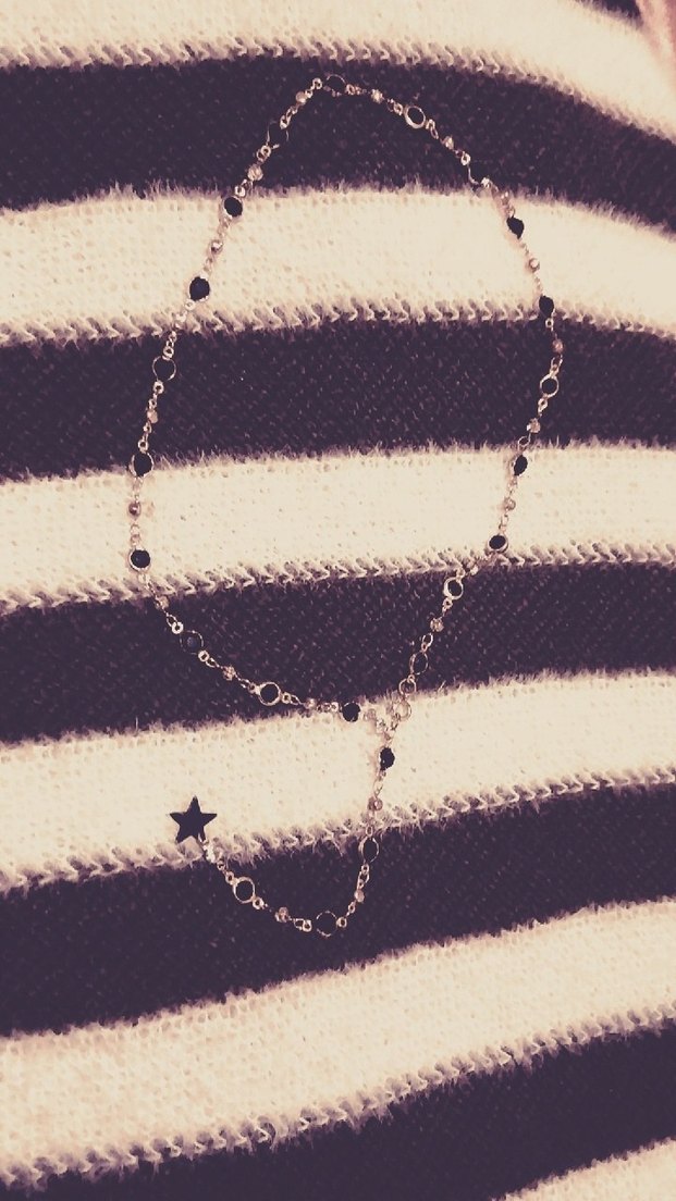 Uzun zincir detaylı, yıldız figürlü koyu renkli bohem tarzda kadın kolye, parti için uygundur.