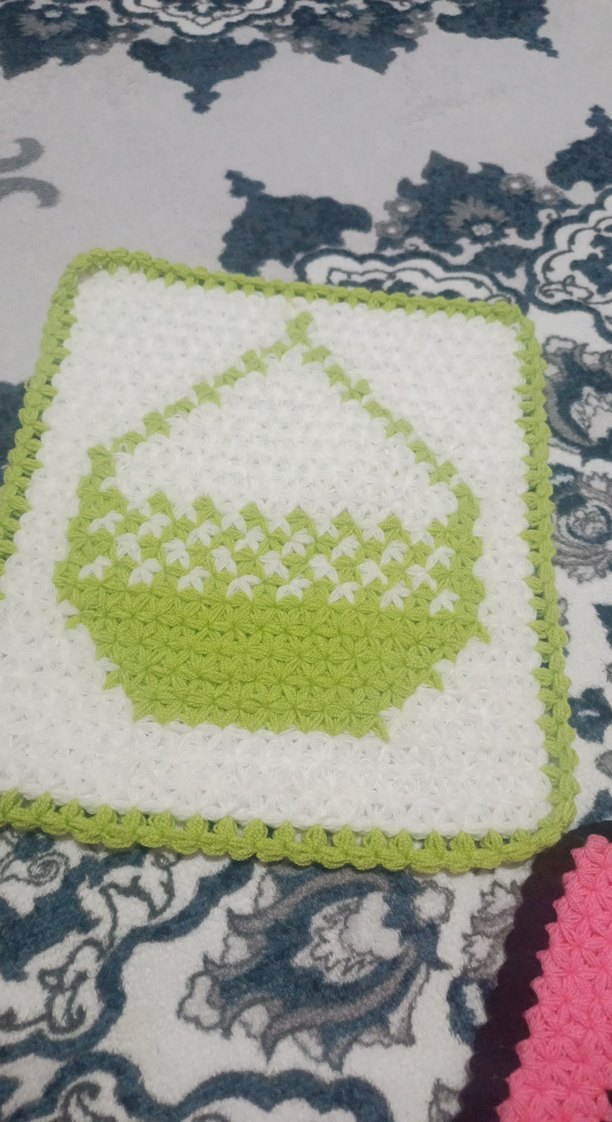 El yapımı, açık yeşil ve beyaz renklerde desenli, dokulu banyo süngeri.