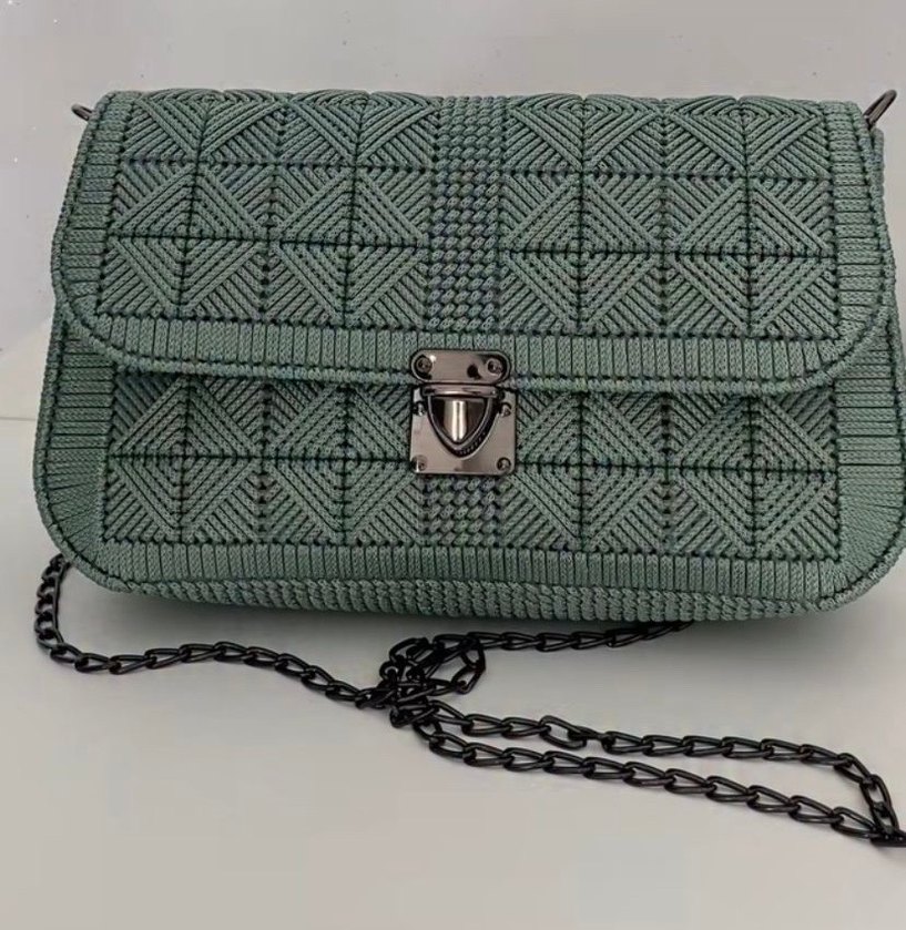 El yapımı yeşil Örgü, Zincir Detaylı Kadın Çanta