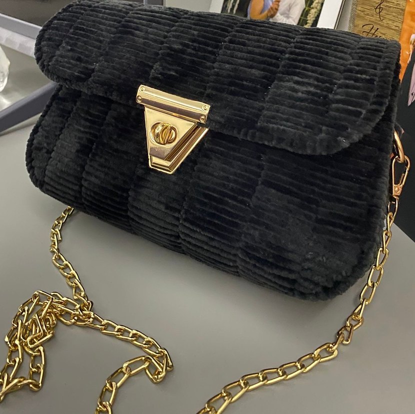 El yapımı Zincir Detaylı Siyah Süet Kadın Çanta