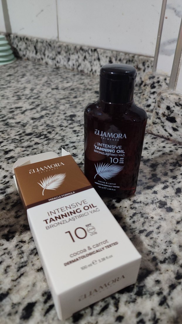 Elamora Yoğun Bronzlaştırıcı Yağ, kakao ve havuç özleri içerir, SPF 10 korumasıyla bronzlaşmayı destekler. Dermatolojik olarak test edilmiştir.