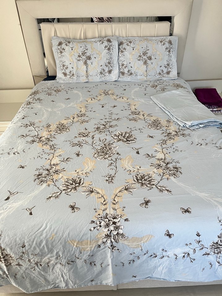 Elart 2 adet yastık kılıfı nevresımı ve çarşafı var yüzdeyüz pamuktur yıkanmıs gonderılecek 4 5 kere kullanıldı defosu nevresımde gosterıldı turuncu bır leke ve çarsafta mınık yırtık var onu ben bazaya takıldı cekınce yırtıldı fıyata yansıttım