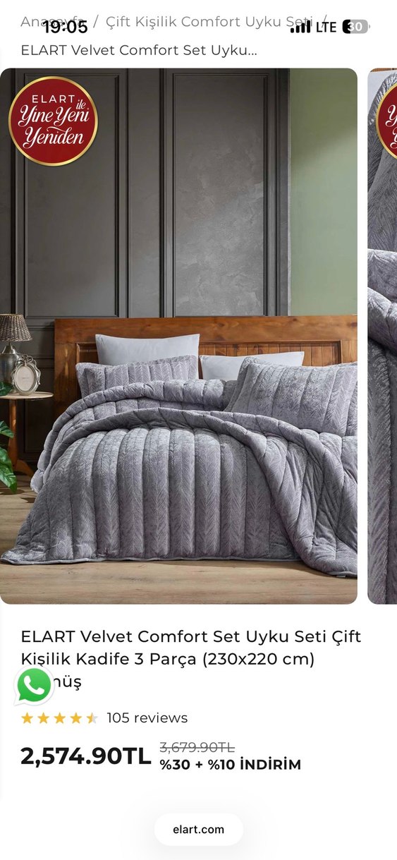ELART Kadife Uyku Seti, 230x220 cm ölçüsünde, yumuşak kadife kumaştan yapılmış 3 parçalı çift kişilik set. Düz gri renkli, rahat bir uyku ortamı sağlar. ️