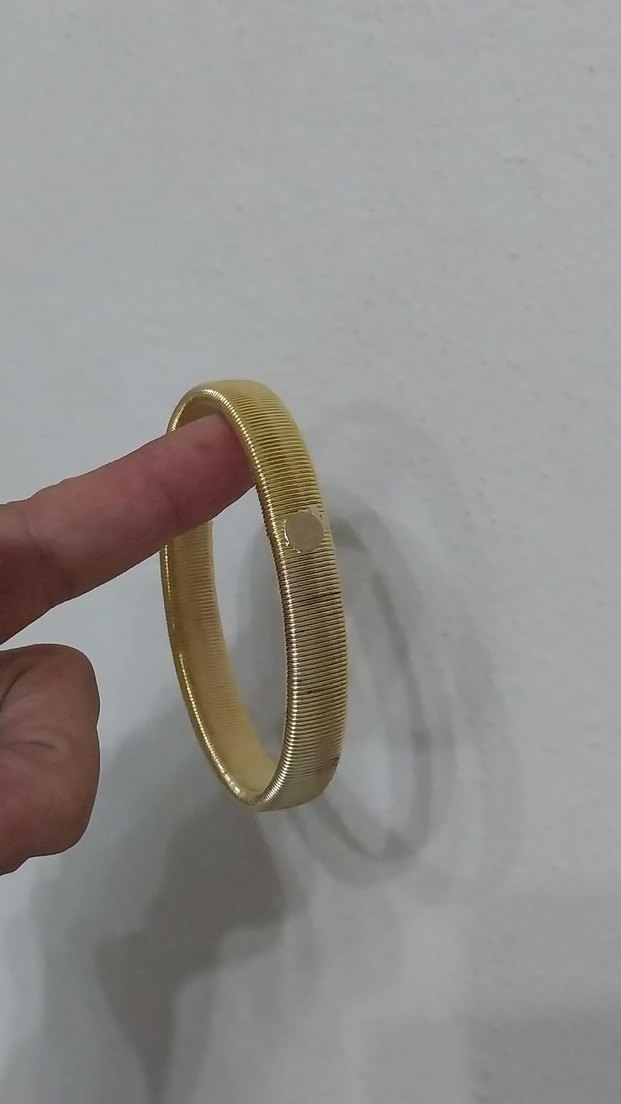 Parlak altın renkli, elastik yapıya sahip kadın bileklik. Minimalist tarzda, desensiz ve günlük kullanıma uygun.