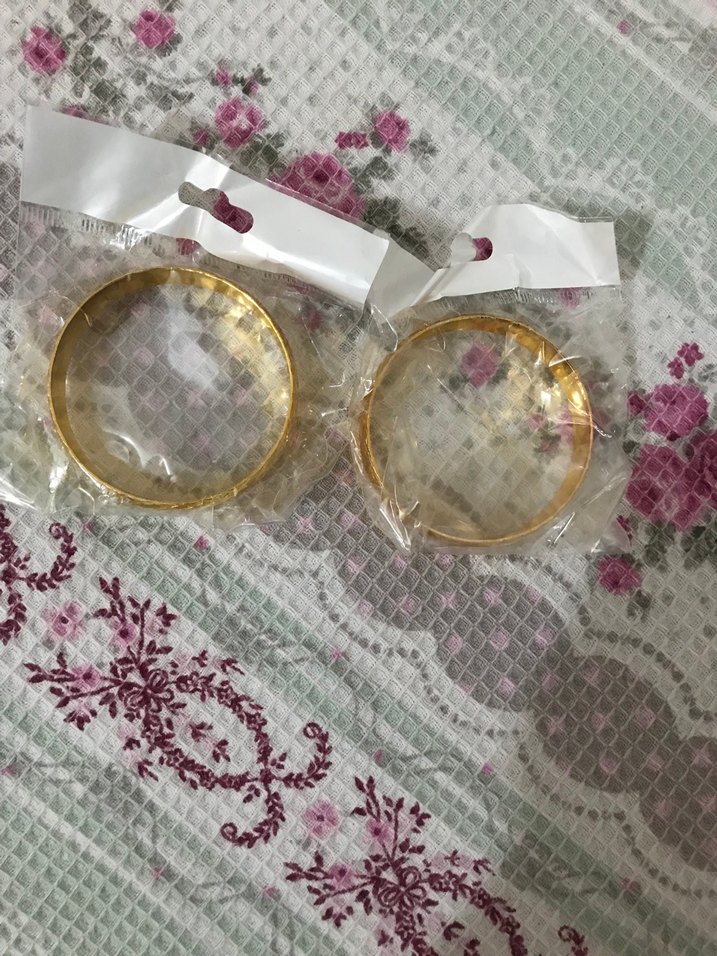 Düğünler için uygun, elastik yapıda, altın renkli ve vintage tarzda iki adet sade desenli kadın bileklik seti.