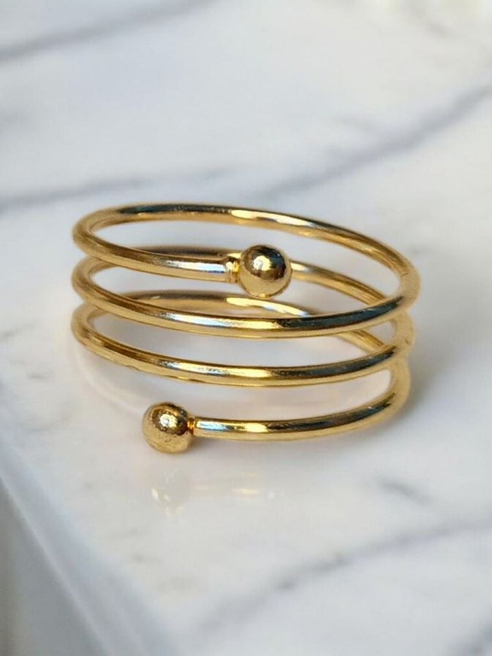 Parlak altın renkli, elastik tasarımlı, minimalist ve desen içermeyen yüzük, günlük kullanım için uygundur. ✨