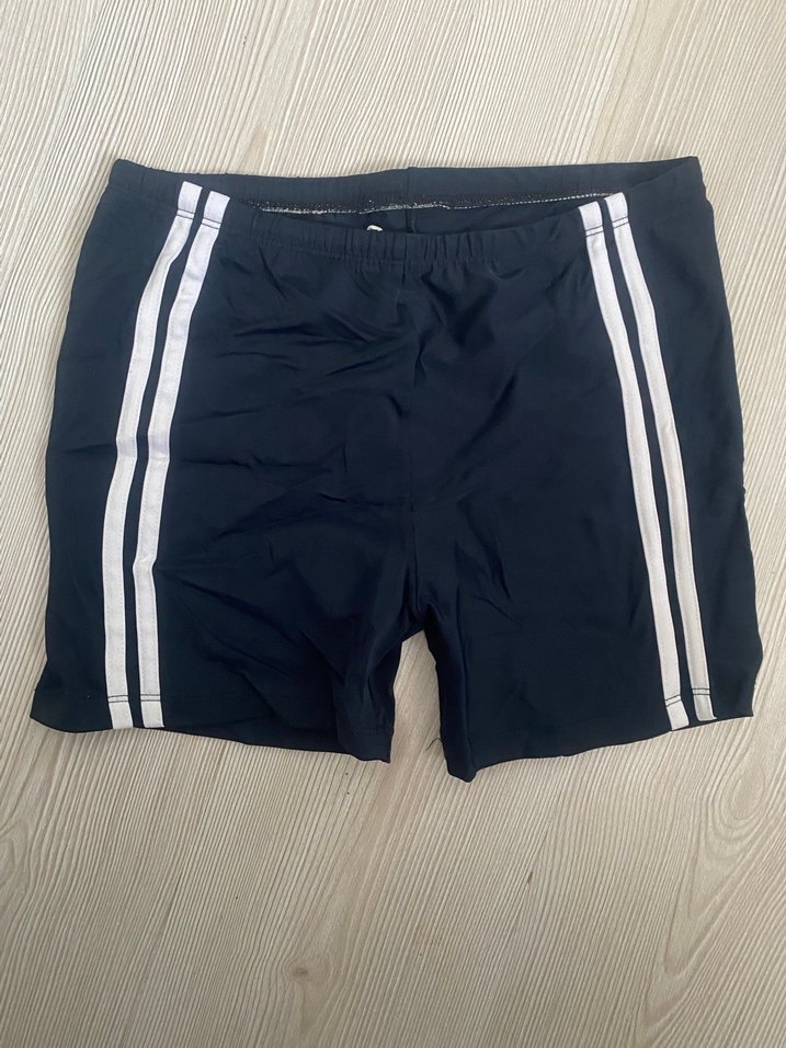 Elastik bel detaylı, yanlarda beyaz şeritli siyah erkek mini mayo, sıkı ve sportif bir görünüm sunar.