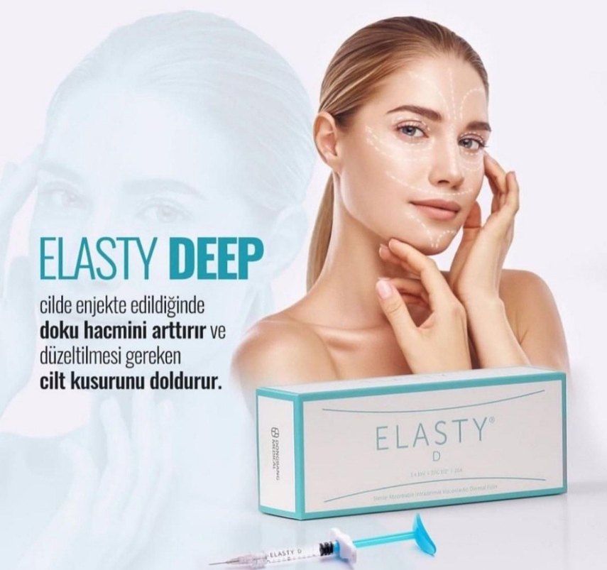 ELASTY .Elasty D plus.orta sert Hyaluronic Acid dolgusu.gozler altina hariç bütün yüz için uygun.Dudak için uygun.-kontur ve hacım için!!Fiyat 1 ml için. skt:09/2027.