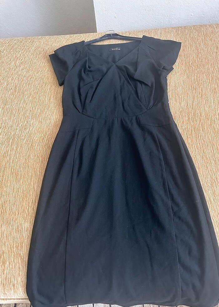La Luce marka sadece 1 kere giyilmiş astarlı yandan fermuarlı 42 beden siyah elbise (kumaşı krep diye düşünüyorum) yaka detayı sonradan diktirilmiştir. Boy 104 cm, omuz 43 cm , koltuk altı 47 cm
