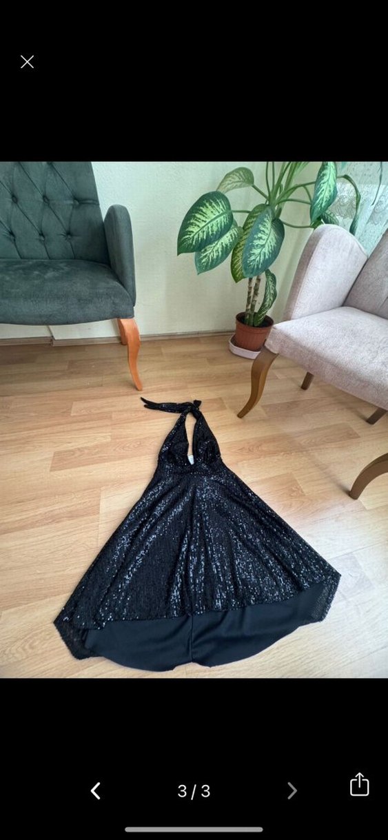 Drapeli tasarımı, V yakası ve ince askılarıyla siyah, uzun ve vücuda oturan gece elbisesi. Parlak detaylar ve şık görünüm sunar. ✨