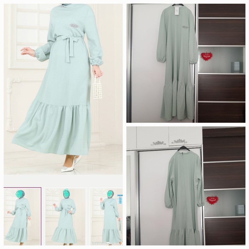 kol altı genişlik 66 cm. Boy 142 cm. Yeni etiketli bürümüş kumaş arkada fermuar önde taş detayı var mint yeşili