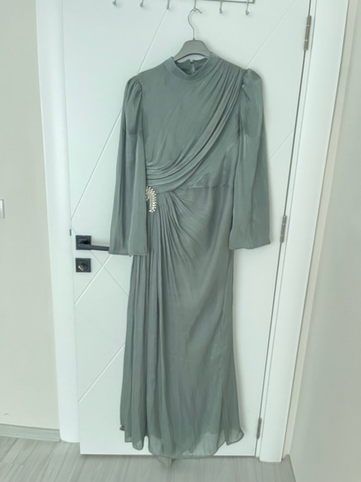 Ürünün kalıbı dar 40 giyinen birinin tercih edebileceği bir beden 44 beden severek giyindim bir kere kullandım kuyruğu uzun kestirmediğim için yırtılma olmuş görselde de görebilirsiniz alan kişi boyuna göre kestirebilir ☺️