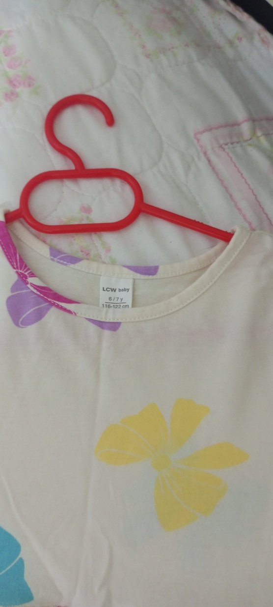 6-7 yaş için uygun, baskılı çiçek desenli elbiseler Yumuşak kumaştan üretilmiştir.