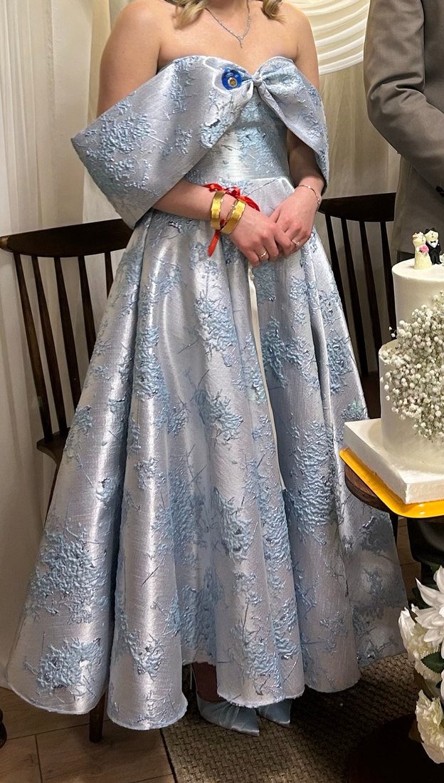 Mavi renk nişanda bir kez giyile elbise çok iyi durumda hiçbir kusuru yok Nakışlı ve drapeli tasarıma sahip, straplez ve uzun kesim elbise, klasik şıklıkla düğünler için uygundur.