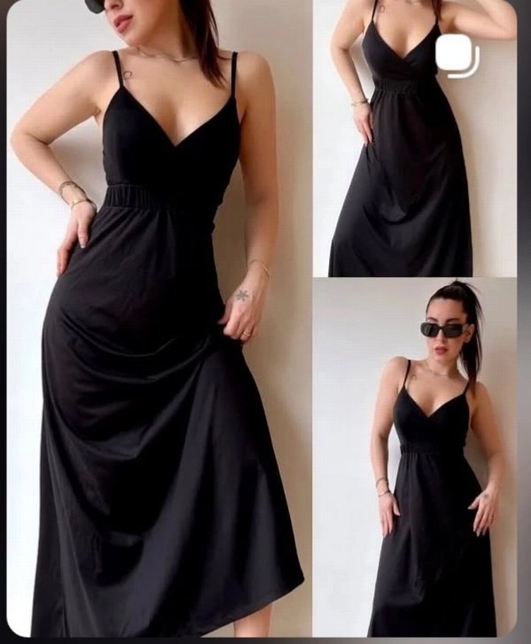 Siyah,ince askılı ve straplez yakalı, vücuda oturan mini elbise,cesur ve minimalist gotik tarzda,düz ve pürüzsüz sentetik kumaştan.günlük kullanım için uygundur. Beşinci görselde görüldüğü gibi fermuarı yoktur ondan başka sorunu yoktur 34/M Beden Ürünün giyilmiş andırıyor halindeki görseli yükledim