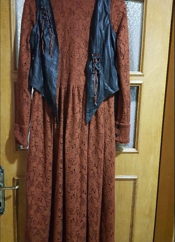Puane kalın kışlık elbise deri belden kuşaklı ve yelekli. Hiçbir kusuru yoktur.Astarlıdır