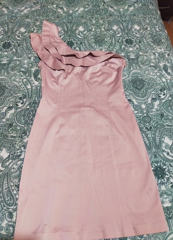Ucuk pembe tek omuz kisa elbise 42 beden