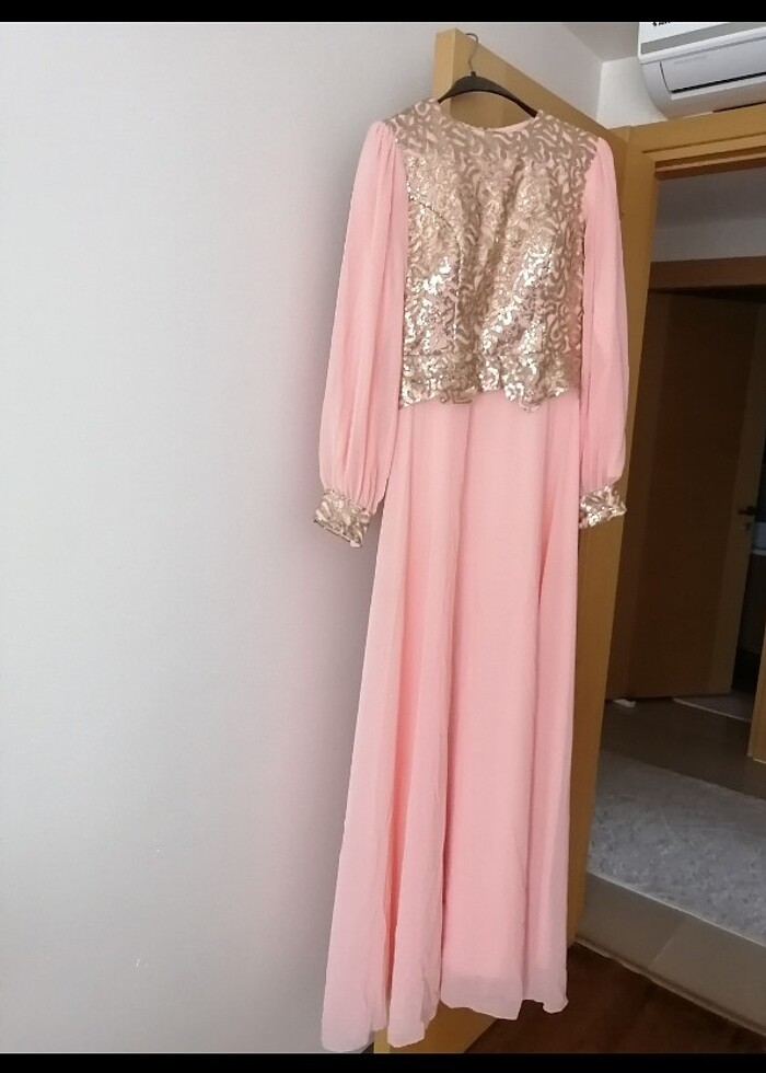 Tesettür elbise düğün için sadece bir kere giyilmiş olup daha sonrasında dolaba kaldırılmıştır 165 boyunda 38 beden birine rahatlıkla olur #elbise #tesettür #abiye #ayakkabı #çanta #şal