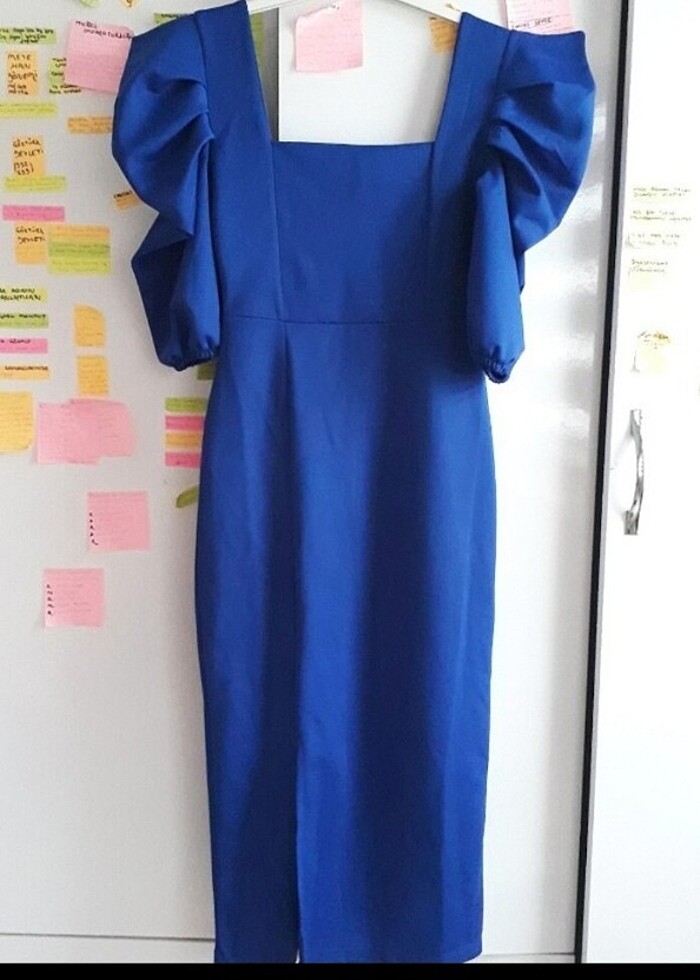 Çok şık bir elbise. Sadece bir kaç saat giyildi. Omuzları hafif düştüğü için terzide pens attırdım. Merak ettiklerinizi sorabilirsiniz. Teklif gönderiniz.