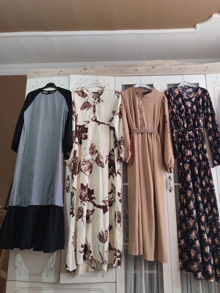 siyah kollu ekoseli 100 TL diğerleri 200 TL tunik 150 TL kot etek 100 TL.