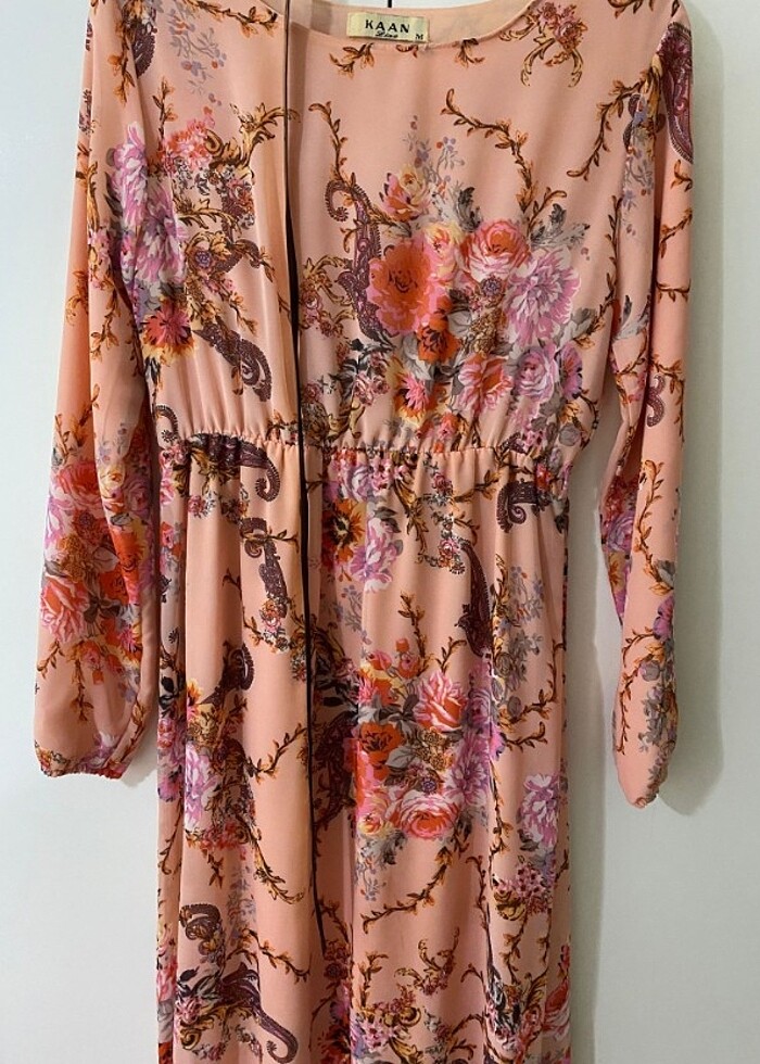 Çok az kullanıldı. Uzun elbisedir. Şifondur.