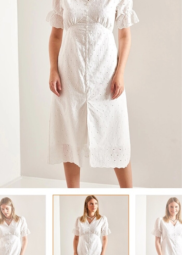 38 beden yeni beyaz tatlı bir elbise önden yırtmaçlı
