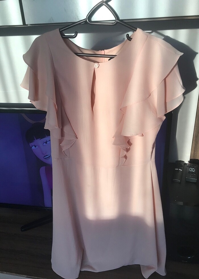 Sorunsuz çok tatlı bir elbise herhangi bir kusuru yok Kısa değil diz hizası