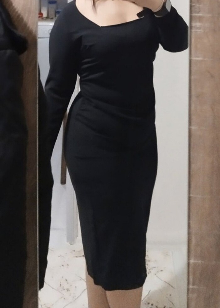 ürün yeni diye fiyatı yüksek fakat indirim de bulunabilirim diz altı yazlık elbise hem şık hem günlük ince kumaşa sahip ve kalitelidir XL XXL bedene uygun LCW ürünüdür kare yaka uzun kollu siyah elbise yandan düğüm modeliyle göbek kapatır