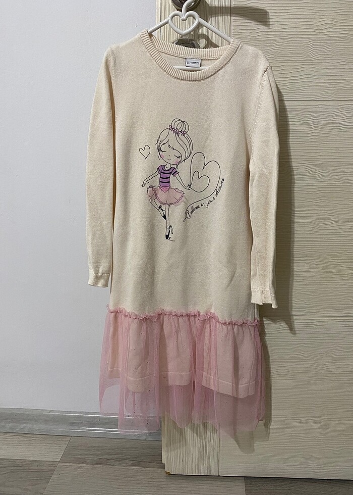 Sadece etiketi yok hiç giyilmedi etiketi 6-7 yaştır. Fotoğrafta mevcuttur