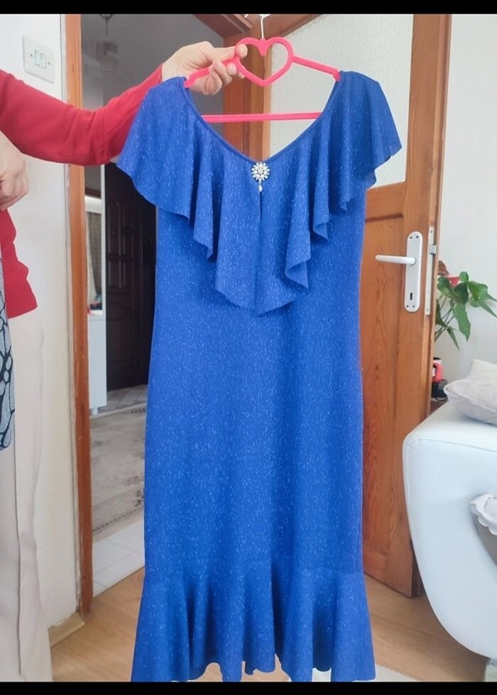 Işıltılı abiye midi elbise hiç kullanılmadı