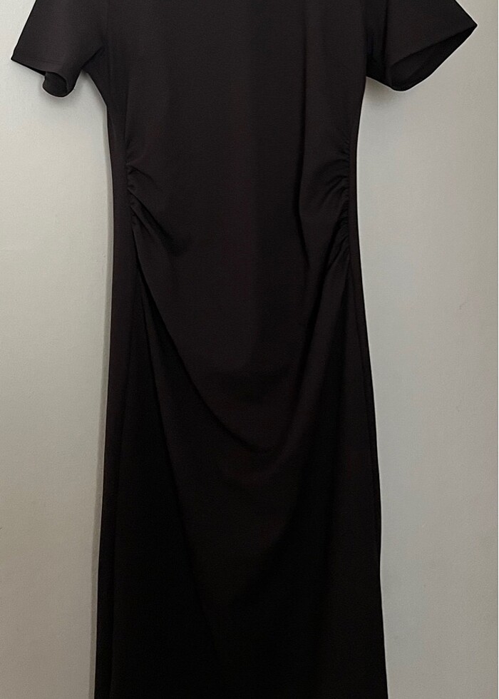 Arkadan yırtmaçlı büzgü detaylı elbise