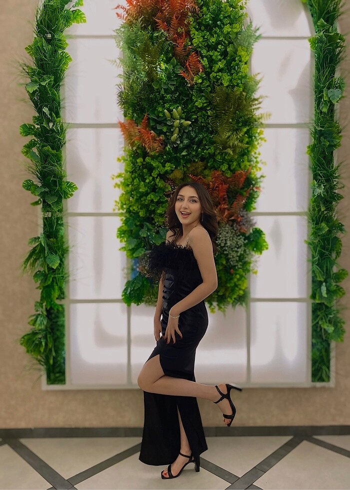 Siyah, göğüs detayı tüylü, 34-36 beden elbise Bir kere giydim sadece.