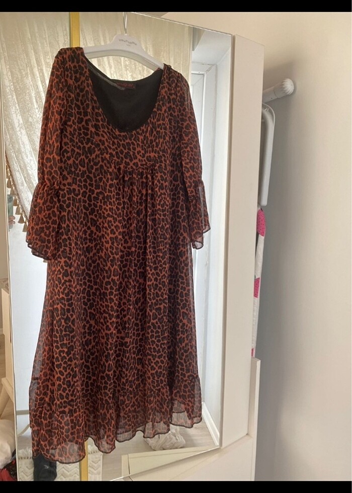 Kısa şifon leopar elbise hiç giyilmedi sıfır