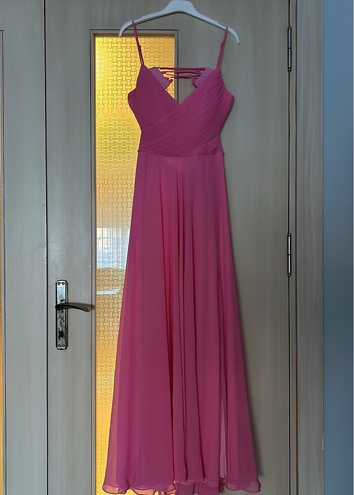 Bi kaç ay sonraki düğün için almıştım fakat başka bir renk giymeye karar verdim yani hiç giyilmedi tertemiz defosu yok kılıfıyla birlikte göndereceğim . İpli olduğu için kendinize göre ayarlayabilirsiniz. Basen kısmı da etek olduğu için dar değil rahatlıkla giyilebilir. Net bir şekilde pembedir. Şifon elbise