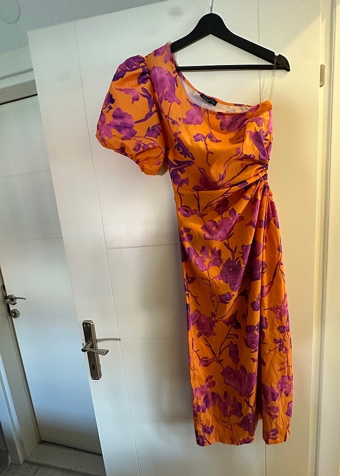 Turuncu tek kol elbise. 1 kez kullanıldı. Temiz