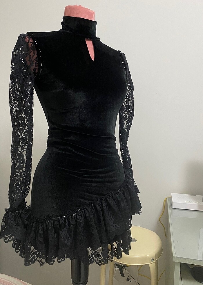 Özel tasarım siyah kolları fransız kupür detaylı kadife vücuda oturan elbise Satılık ya da k*ralıktır.