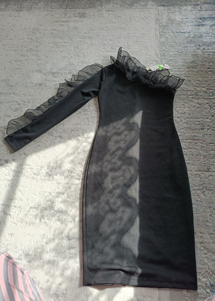 Siyah tek kol fırfırlı etiketi üzerinde bedeni olmadığı için satıyorum. Bedeni S-M ama s daha uygun olur dar kesim.