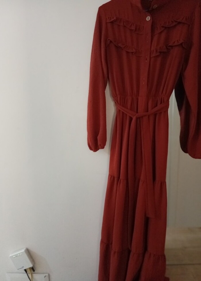 Rengi Koyu Turuncudur. Az kullanılmıştır. Bedeni 2 dir. #elbise #kıyafet #tesettür