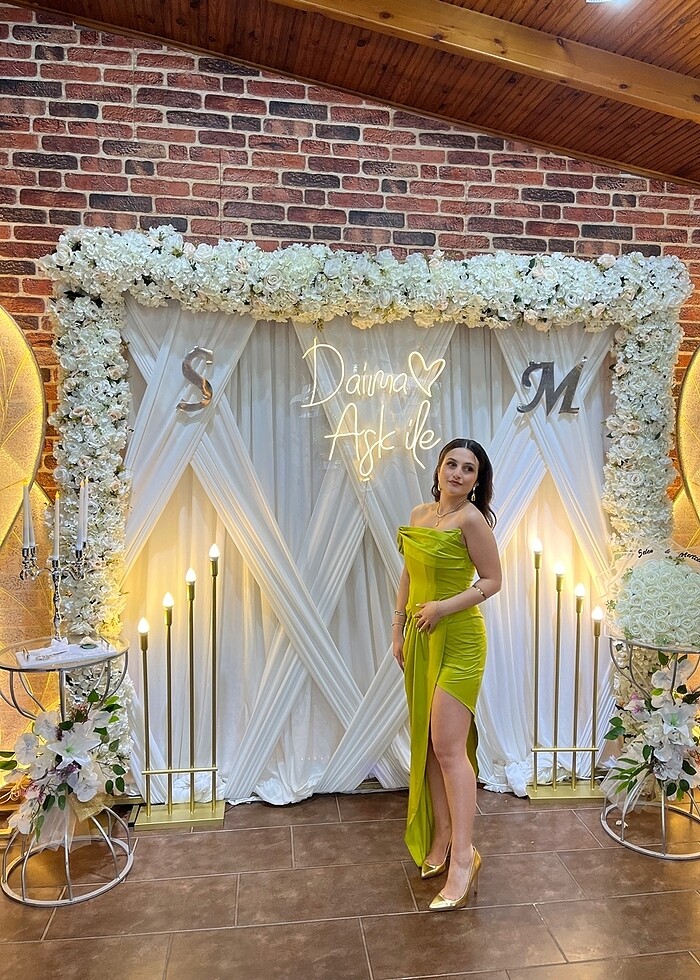Zeynep Tosun koleksiyonu açık yeşil abiye elbise bir kez giyildi temiz