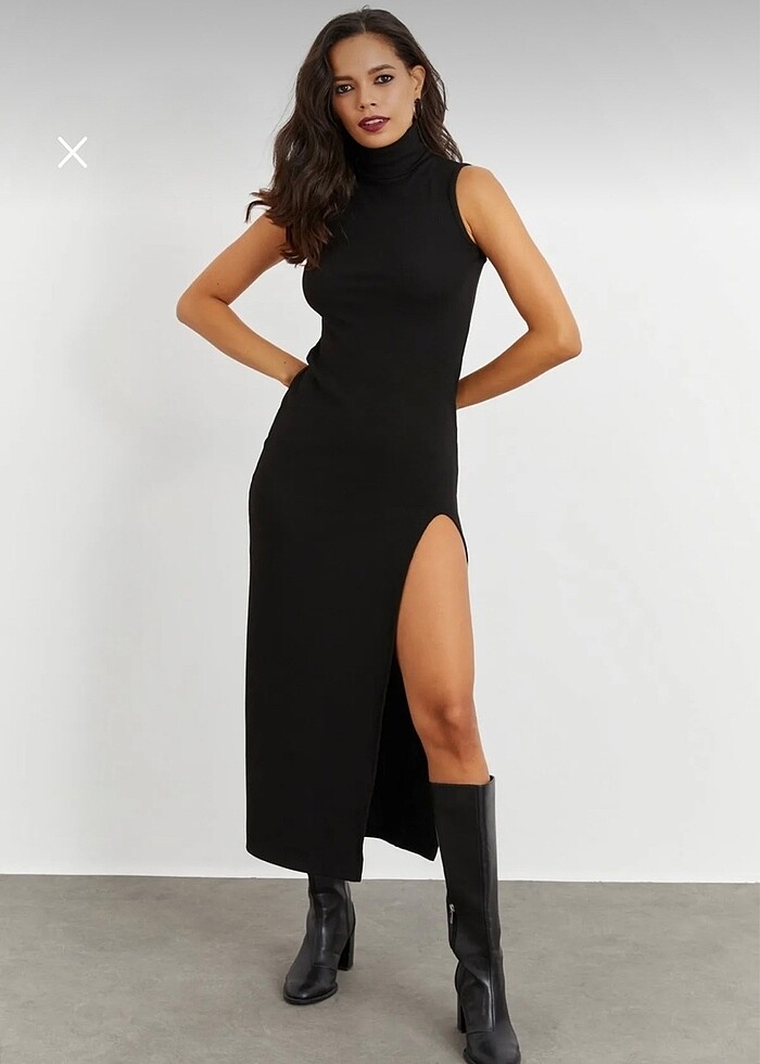 Siyah midi balıkçı yırtmaçlı elbise. Hiç giyilmedi etiketi üzerinde