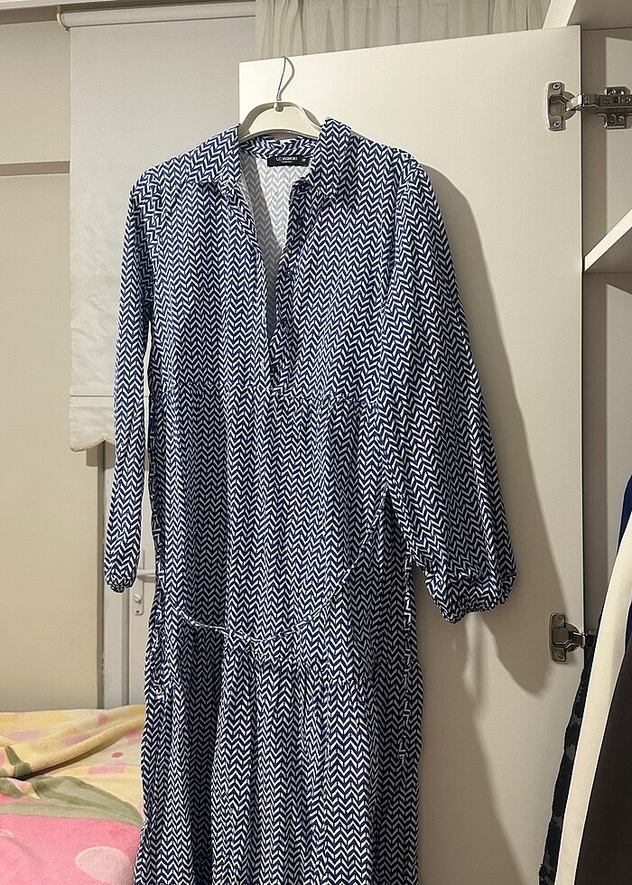 yazlık çok güzel bir elbise kuşaklı sayılı giyildi
