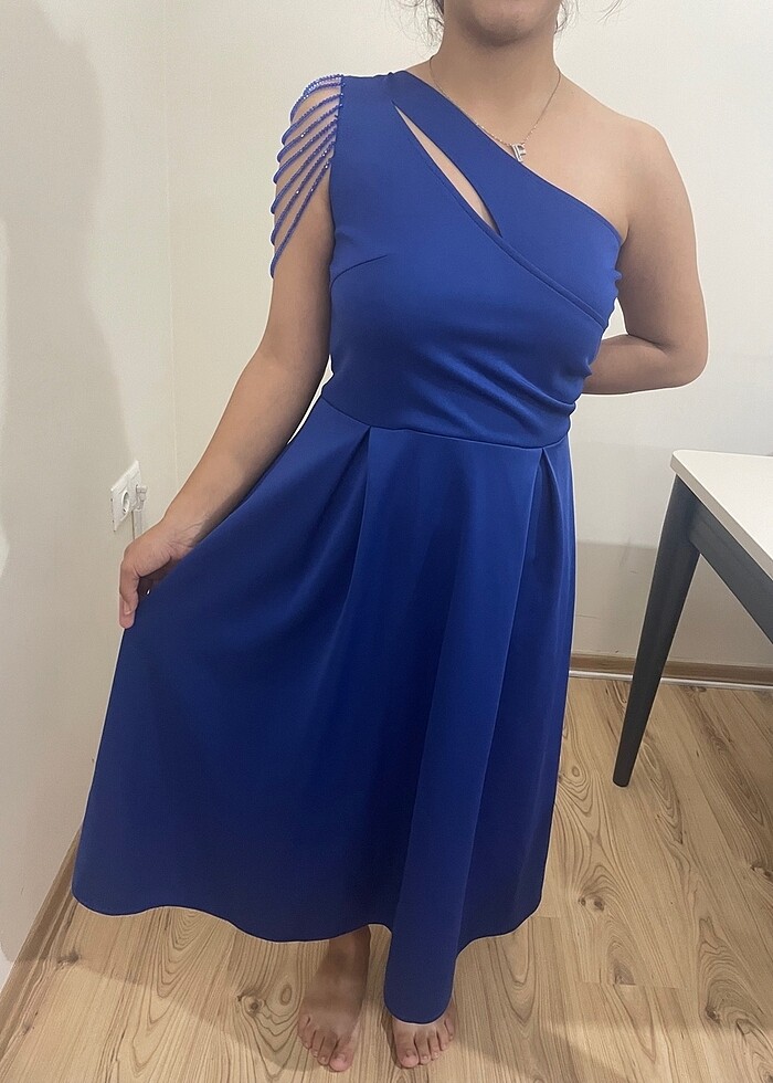 Bir kere giyildi tek omuz detayı midi boy çok şık