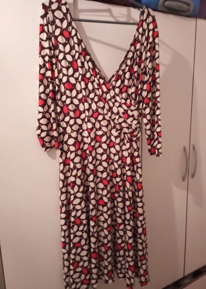 Ön arka v yaka elbise yumuşacık kumaşı var.Hiç bir sorunu yok maksimum 3 kez kullanılmıştır