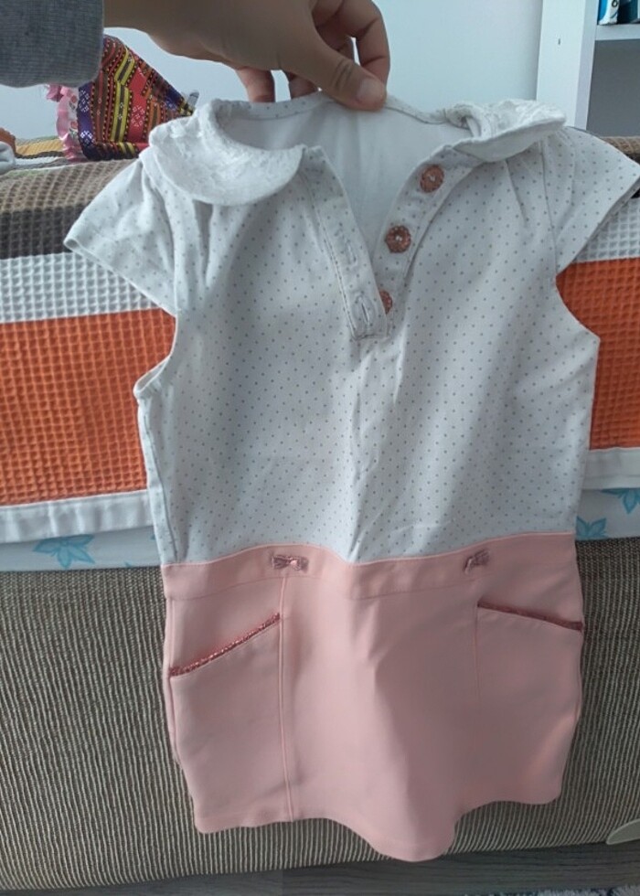 Kız çocuk elbise 3 yaş için uygundur. Lcw dır ama etiketinden rahatsız oldugu için kızım kesmiştim, küçük bi yerinde de belli belirsiz lekesi vardır ama kullanıma engel degildir